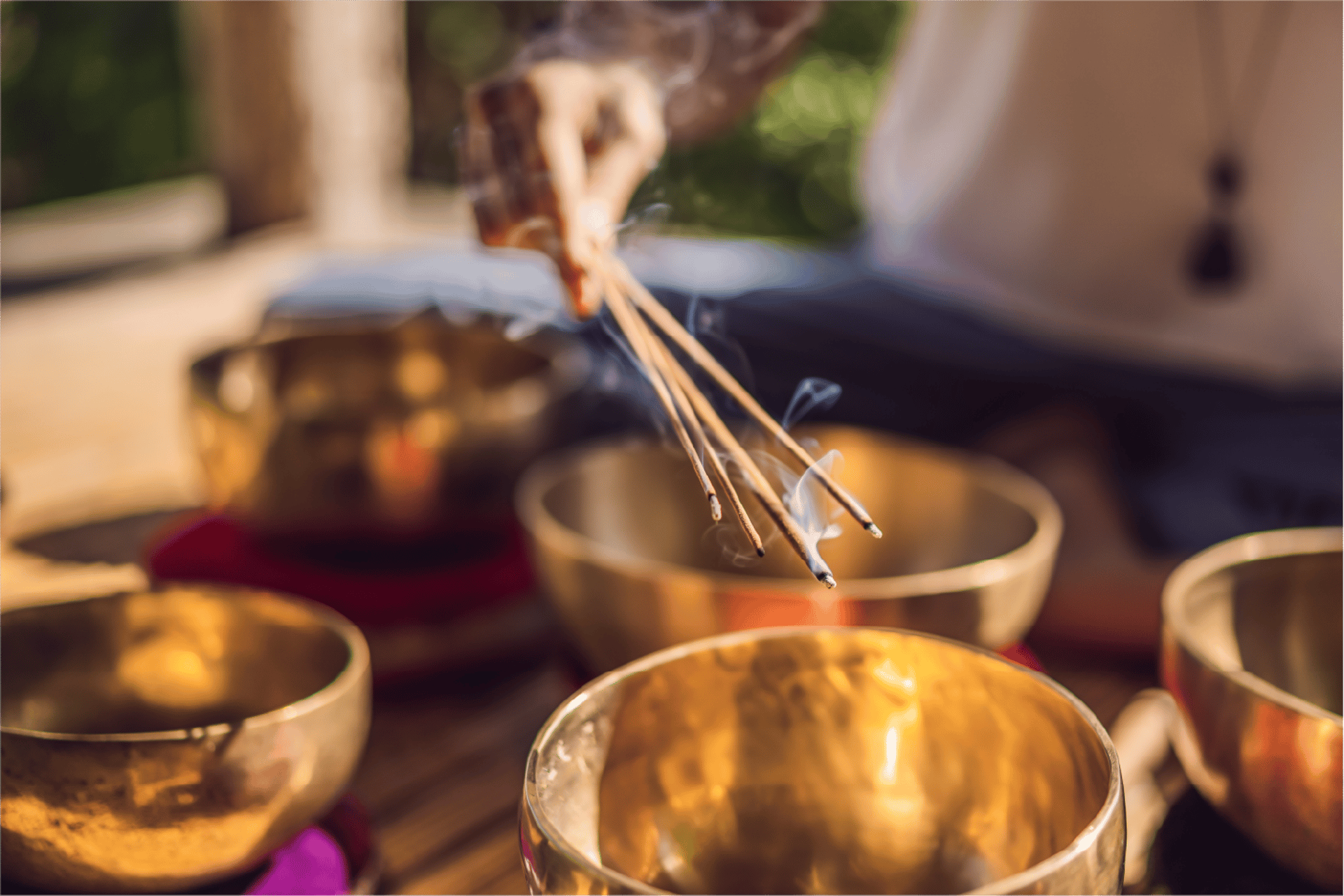 O Ritual Sensorial de Kavy é uma imersão profunda que une Massoterapia Tântrica, Thai Yoga Massage, YMA e Sound Healing com taças e instrumentos vibracionais.